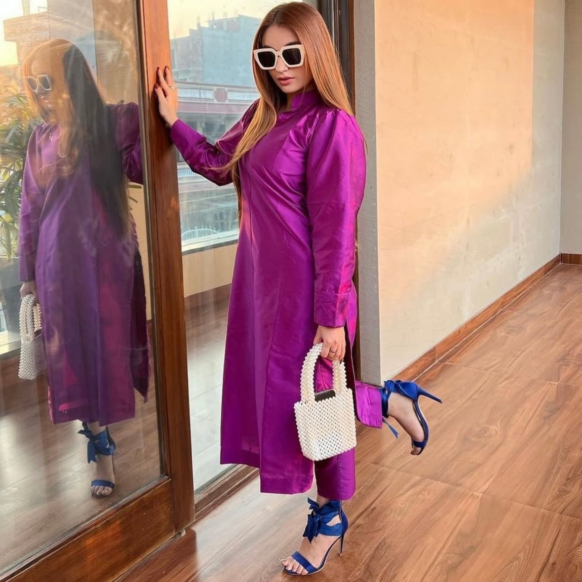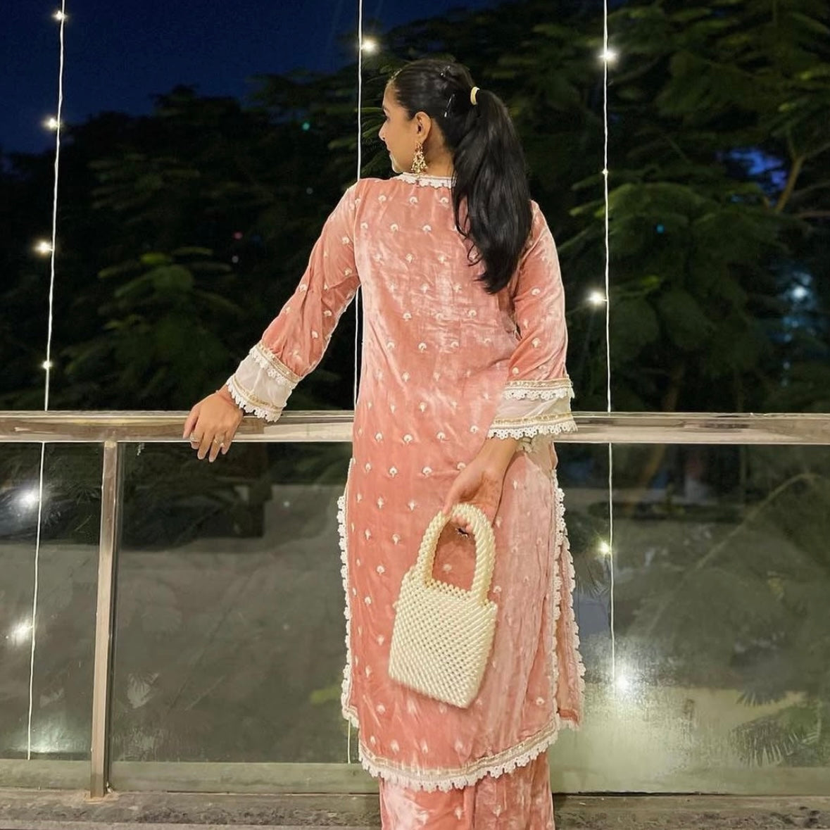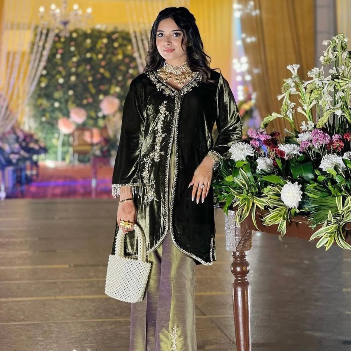 Handcrafted with pearl-like beads in a soft ivory tone, this bag adds a refined touch to any outfit. Perfect for brunch dates, garden parties, or wedding guest looks, it holds your essentials while making a graceful statement. Lightweight, eye-catching, and effortlessly elegant.